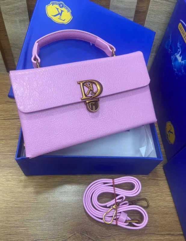 Elegant pink top-handle bag with a gold clasp and detachable strap. (Boxed)