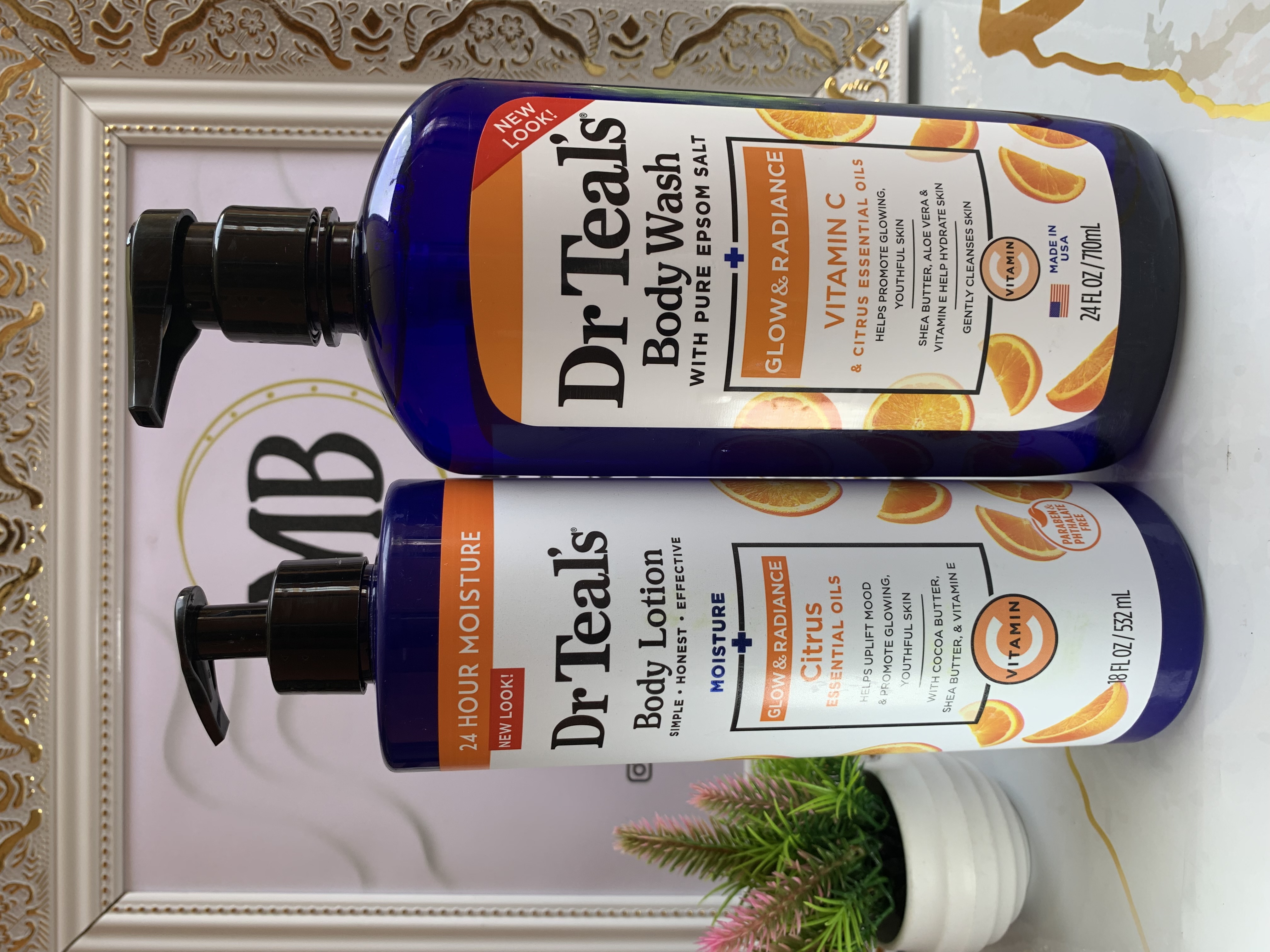 Dr Teal’s glow and radiance body wash and body lotion